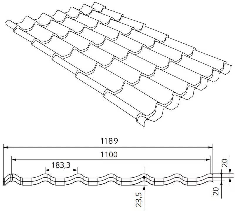 Классик отличается мягкой, симметричной волной и сбалансированной высотой профиля. За счёт этого кровля выглядит аккуратно и «спокойно», без излишней массивности, что особенно важно для домов средней площади.